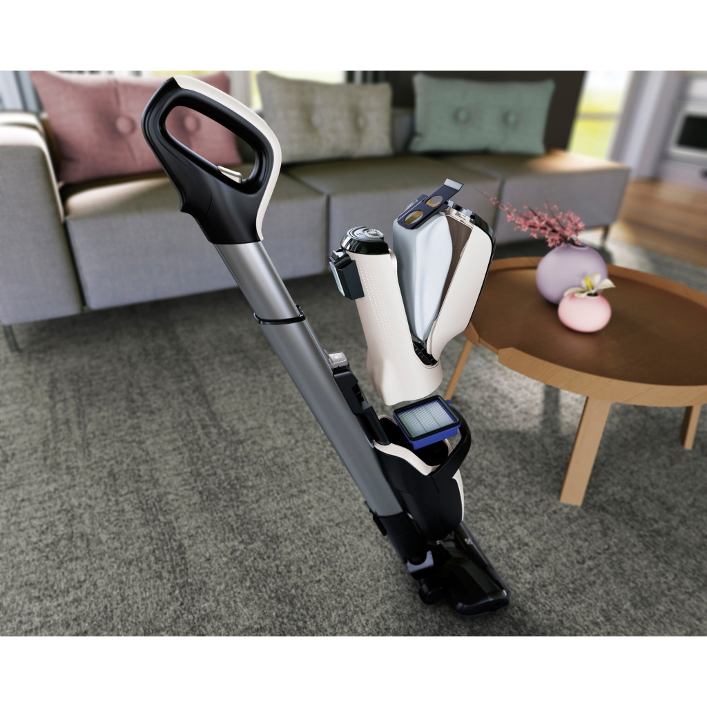 Pure F9 akkumulátoros porszívó allergiásoknak, 36V lítium akku, 3 az 1-ben kefe, dönthető cső, motoros matrac kefe, finom porkefe, gyöngyház színű, működési idő: 60 perc.