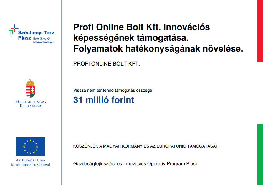 A projekt címe: Profi Online Bolt Kft. innovációs képességének támogatása.